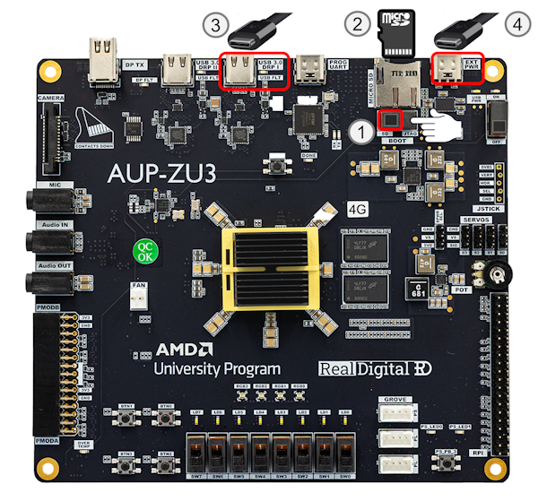 1. Set the BOOT switch to the SD position to boot from the SD card