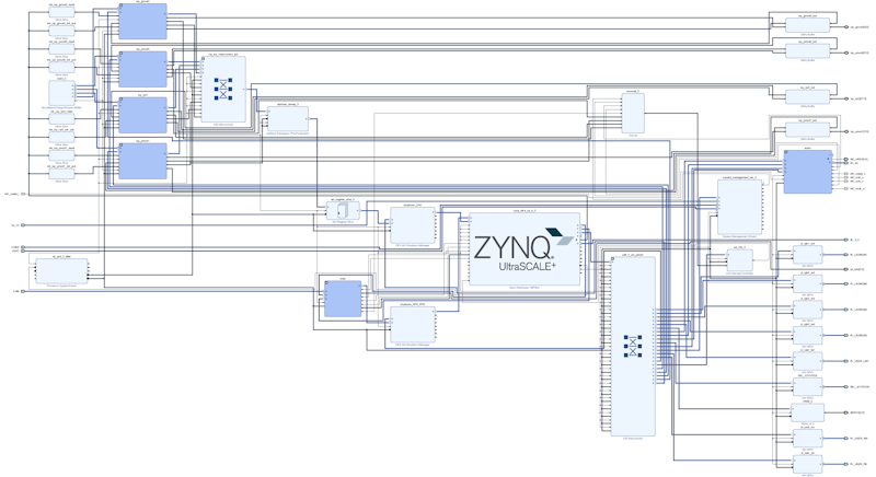 The base overlay is a complicated design with a large number of IP blocks. The image below shows a view of the base design. You can click on this image to see a PDF version of the block design. This picture is only intending to show you a top level view of the level of complexity in the design, and not the detail of every IP. If you would like to explore the design in more detail, you can rebuild the design to this point, and check individual IP, and open various IP subsystems.