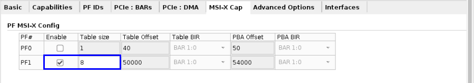 MSI-X capabilities for PF1 were enabled to be used in conjunction with the DMA.