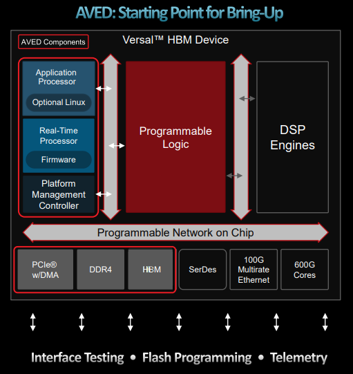 The AVED is built on a Vivado centric design flow so that the application developer can leverage all of the available design optimizations in the Vivado software and IP libraries in their applications.