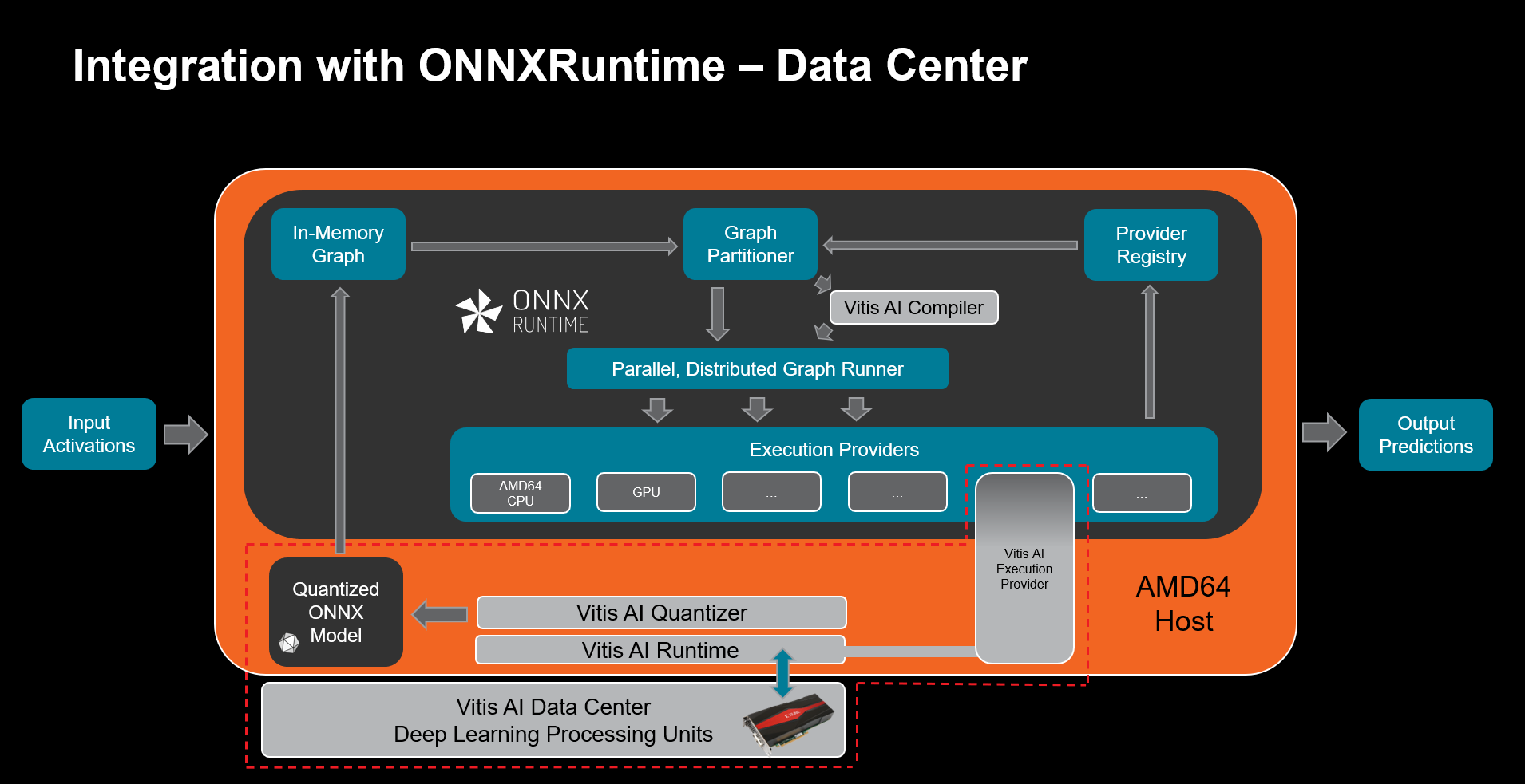 As a reference, for AMD adaptable Data Center targets, Vitis AI Execution Provider support was also previously published as a workflow reference. The details of the Vitis AI Execution Provider used in this previous release can be found here. Our expectation is that the VOE workflow will supercede this historic workflow for most use cases.