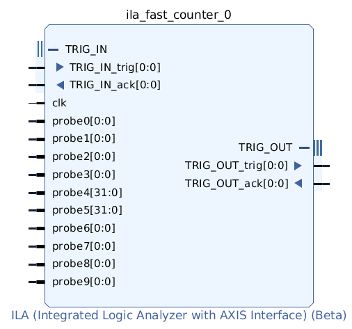 The customizable Integrated Logic Analyzer (ILA) IP core is a logic analyzer that can be used to monitor the internal signals of a design. The ILA core includes many advanced features of modern logic analyzers, including boolean trigger equations and edge transition triggers. Because the ILA core is synchronous to the design being monitored, all design clock constraints that are applied to your design are also applied to the components of the ILA core.