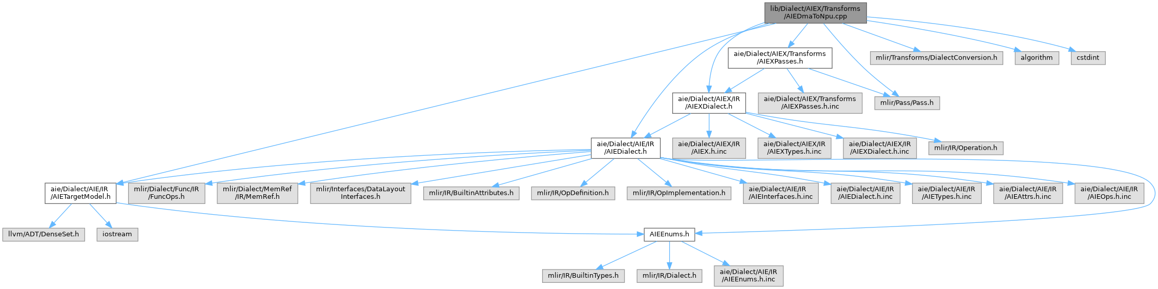 Include dependency graph for AIEDmaToNpu.cpp: