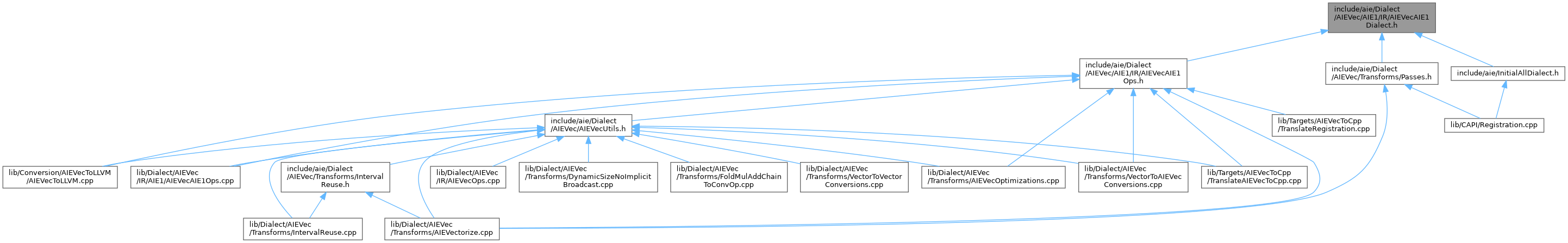 Include dependency graph for AIEVecAIE1Dialect.h:
