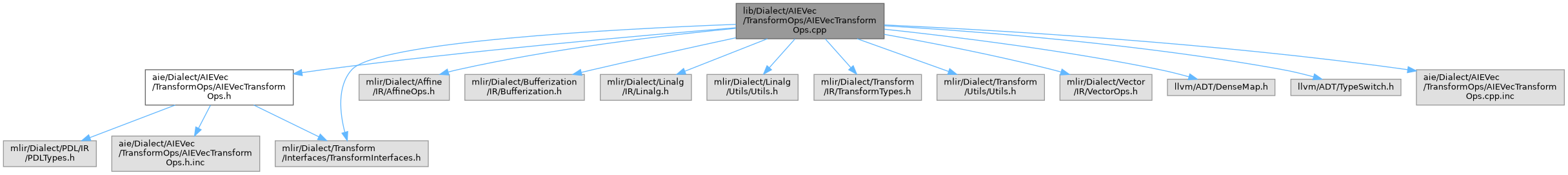 Include dependency graph for AIEVecTransformOps.cpp:Go to the source code of this file.