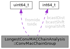 Collaboration diagram for LongestConvMACChainAnalysis::ConvMacChainGroup:Public Attributes | |