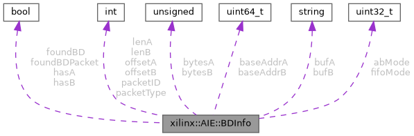 Collaboration diagram for xilinx::AIE::BDInfo:Public Attributes | |